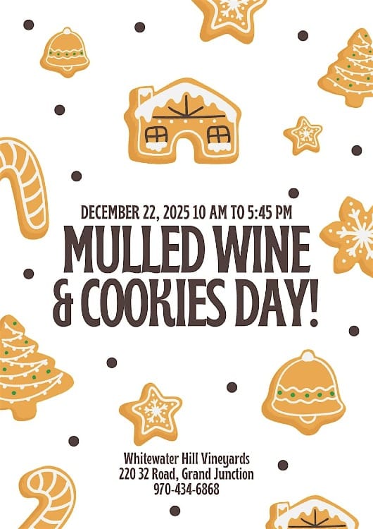 Dec 22 • 10am–5:45pm 📍 Whitewater Hill Vineyards, 220 32 Road 💲 Free Enjoy a cozy afternoon of mulled wine, cookies, and local wine shopping—perfect for last-minute holiday gifts.