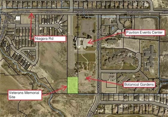 The memorial plaza is planned for a site just west of the Montrose Botanic Gardens, where it will serve as a permanent civic space honoring veterans from Montrose and the broader region.