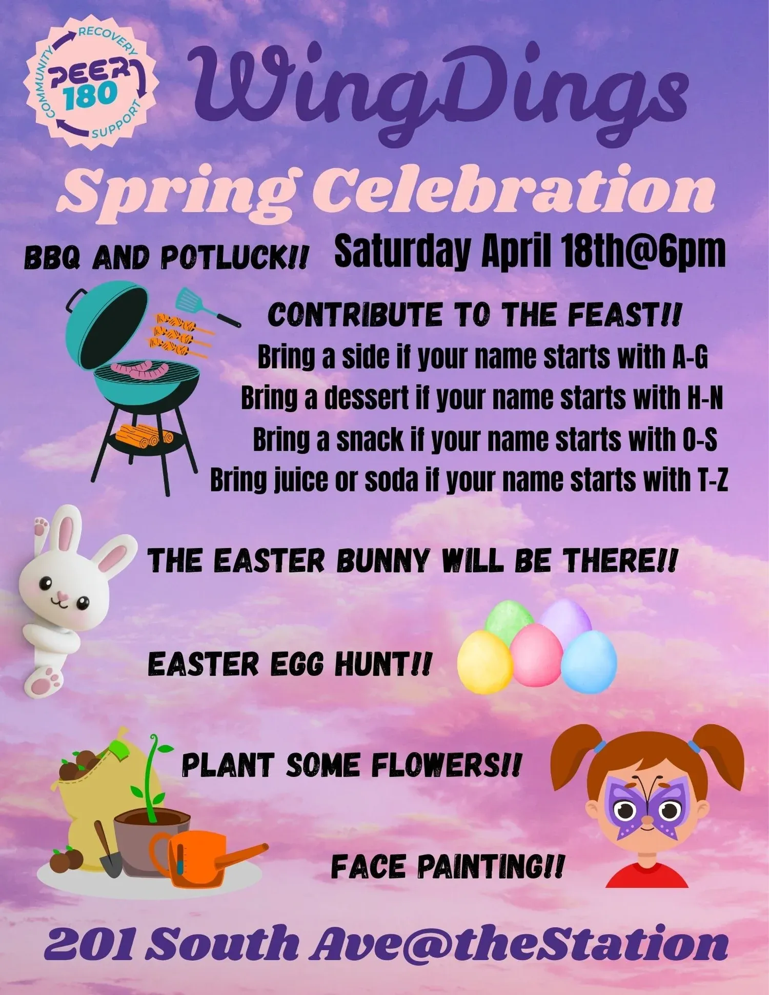 A free, family-friendly spring celebration hosted by Peer-180, featuring a BBQ, potluck, Easter egg hunt, face painting, and flower planting. The event is designed to be welcoming and accessible, with activities for all ages and a strong emphasis on community connection.